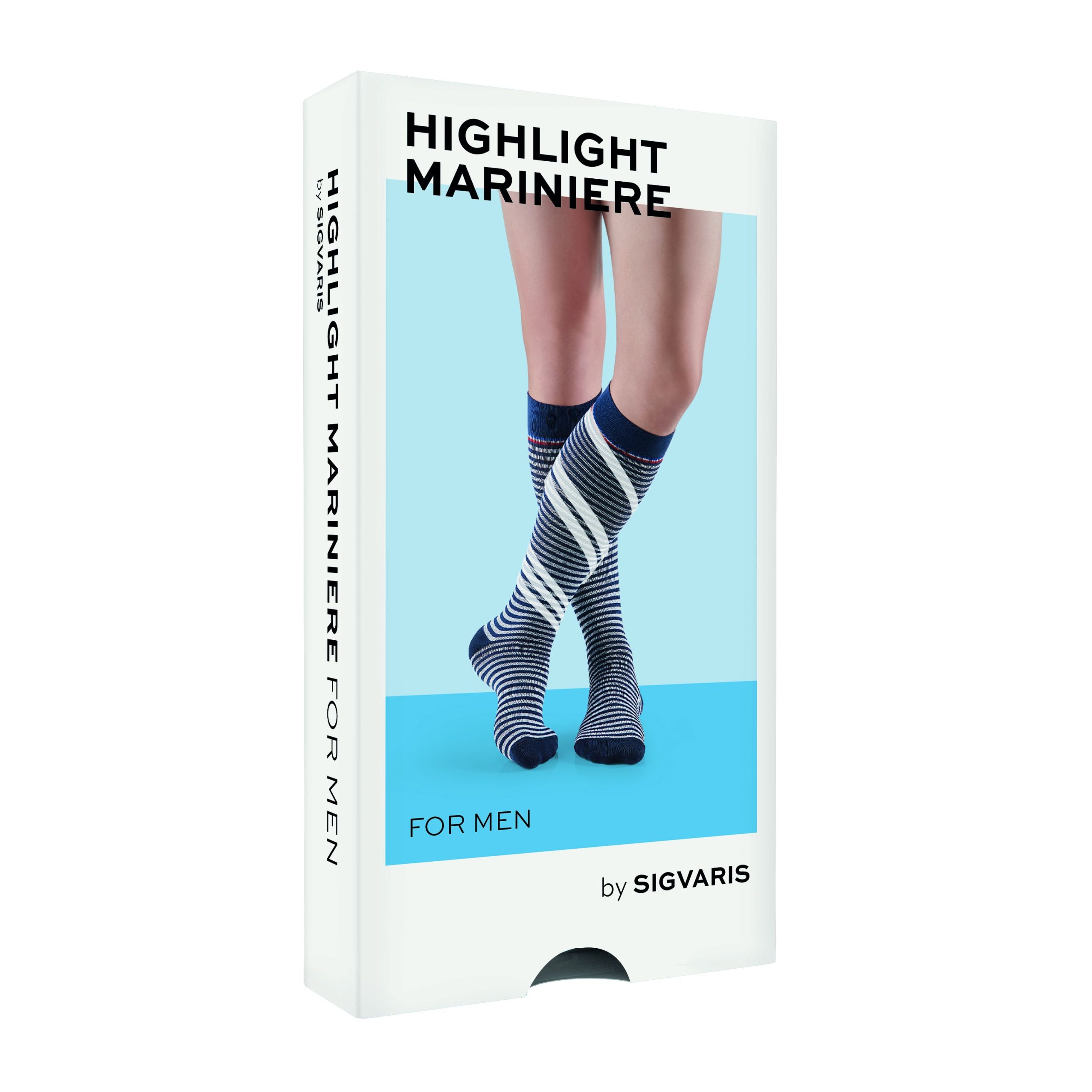 De Highlight Mariniere zorgt met zijn maritieme patroon voor een perfecte uitstraling. De gecontroleerde compressie in deze kniekous ondersteunt de afvoer van bloed terug naar het hart en helpt zo vermoeide en zware benen te voorkomen.
